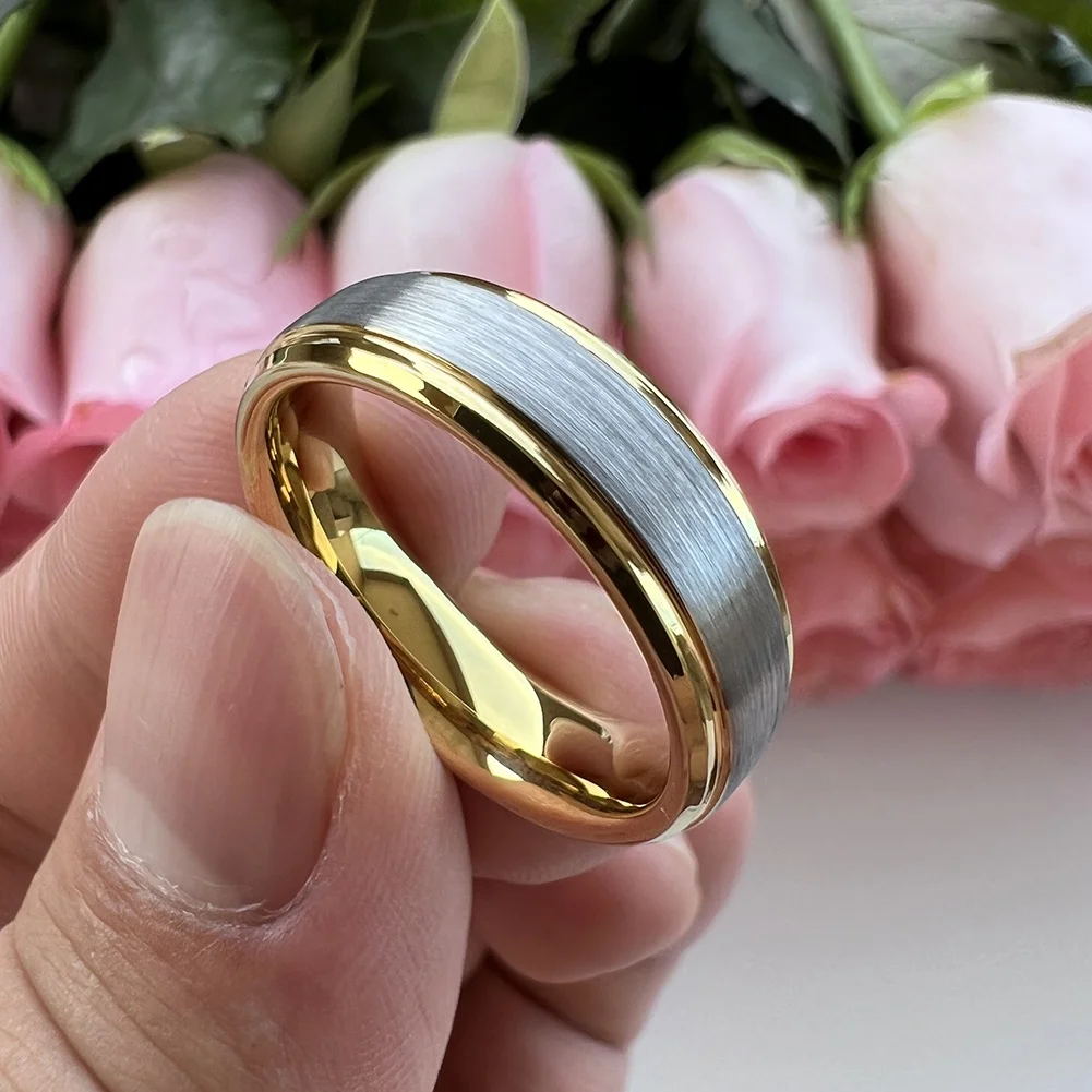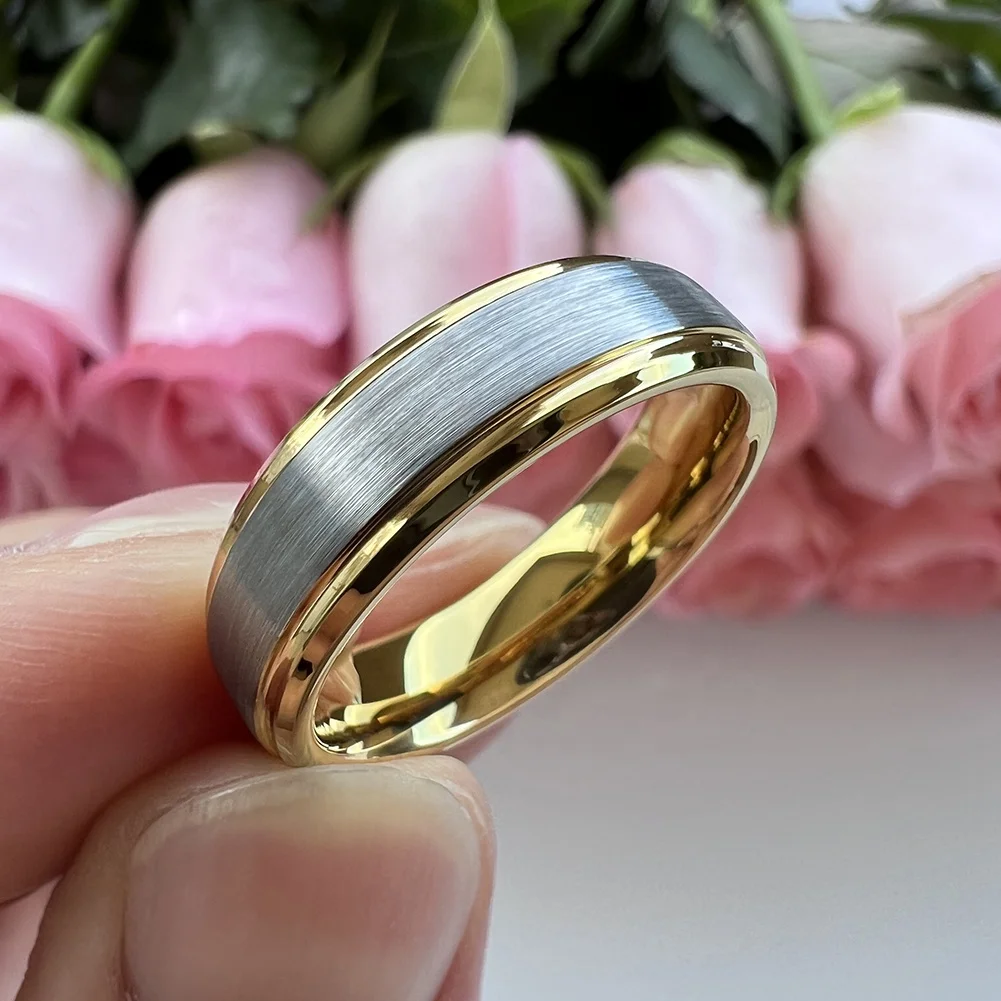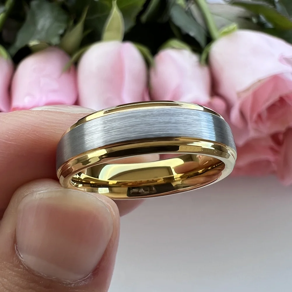 Coolstyle Jewelry 6mm Wholesale Two Tone Gold Tungsten Finger Ring Women Men Dropshipping Fashion Engagement Wedding Band